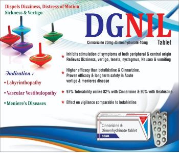 What is Dizinil medication used for? Diznil 25mg Tablet belongs to a class of medicines known as antihistamines. It is used to treat motion sickness (nausea due to motion, especially while traveling in a moving vehicle), vertigo (spinning sensation or dizziness).